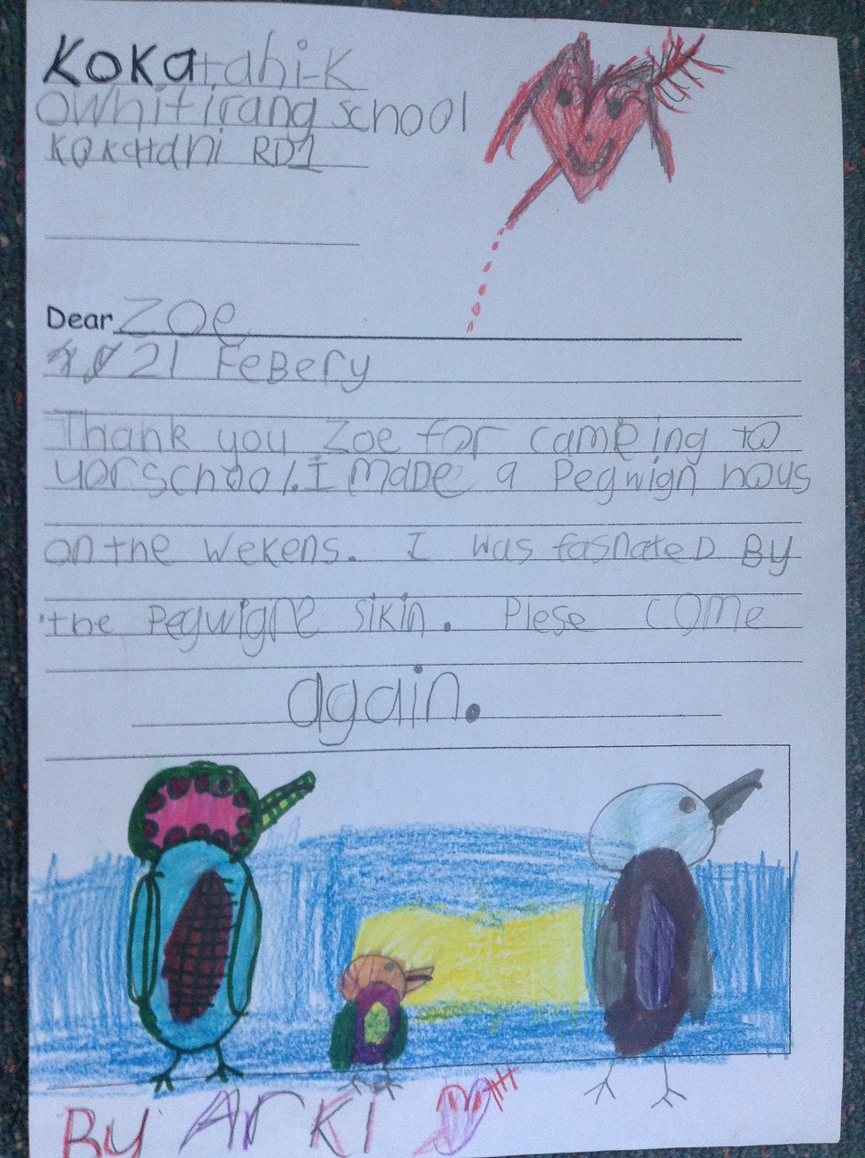 Trust Education project leader, Zoe Watson, recently presented a class session at Kokatahi School and received wonderful thank you letters from some of the children.