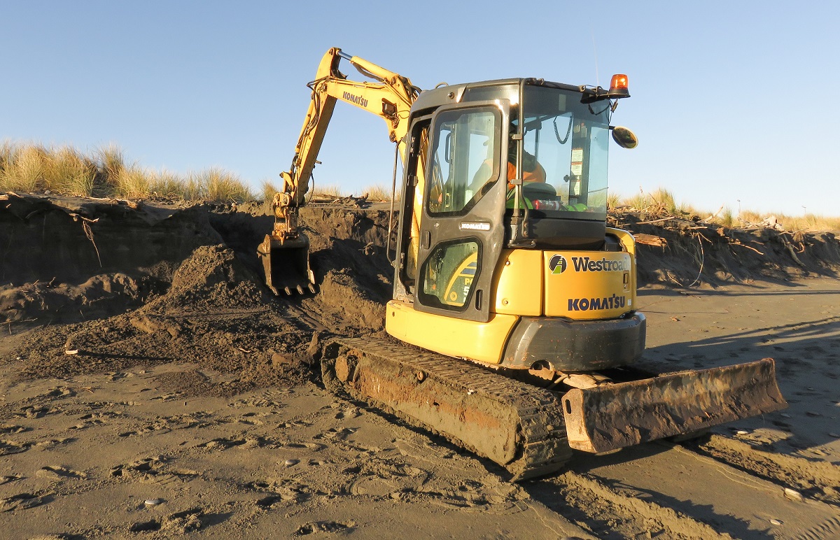 Coastal erosion north of Hokitika has left blue penguins or kororā struggling to get down to the beach and then back up to their nests after a hard day’s fishing. Last year, volunteers used spades to try to help but the ramps they cut were almost immediately lost when the next high waves hit the coast. This year, as the penguins are starting their breeding season and sitting on nests, Westland Milk Products came to the rescue. After Westland made sure penguins were safe in the area during the ocean outfall pipeline construction project and then afterwards with a penguin protection fence, it was a small step to ensure kororā could continue to reach their nests safely earlier this month.
