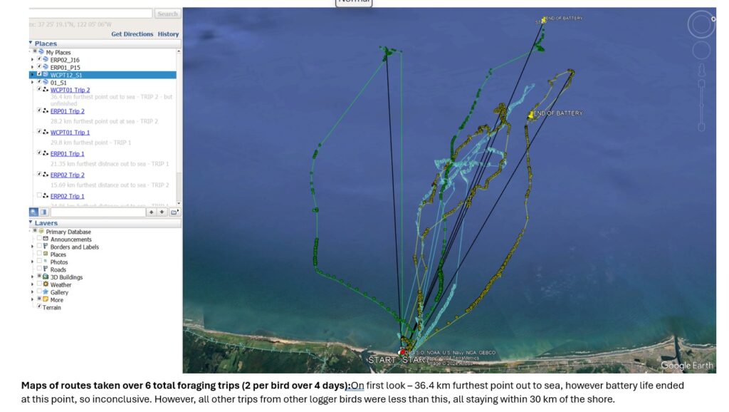 We look forward to some data analysis from the students soon, but we should note this is just year 1! We won’t be able to read too much into data from three birds performing two foraging trips each though we may be able to review alongside our other foraging study results from Charleston. Our pilot study has however confirmed that this is an excellent study site and we are keeping in close contact with the Guardians of Paroa Taramakau Coastal Area Trust as we go.